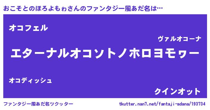 | 意味不明あだ名 | 『おこそとのほろよもゎフォーエバー』 |