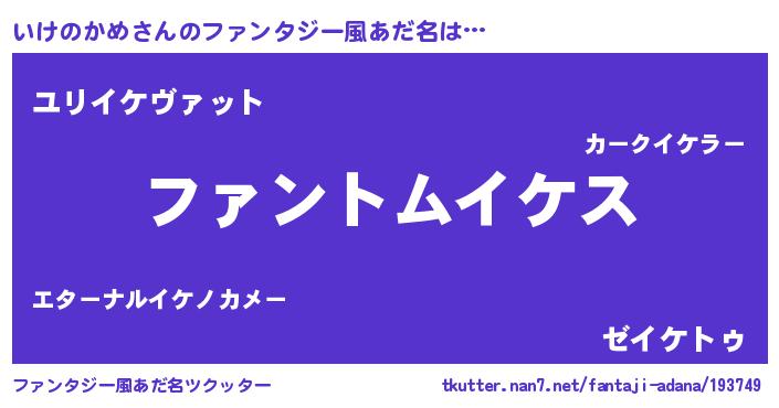 | 男性向けラノベタイトル風あだ名 | 『いけのかめに滅ぼされるだけの簡単なお仕事です』 |