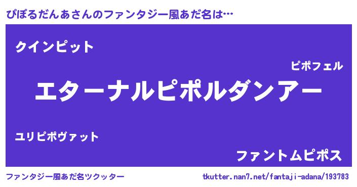 | 意味不明あだ名 | 『ぴぽるだんあフォーエバー』 |
