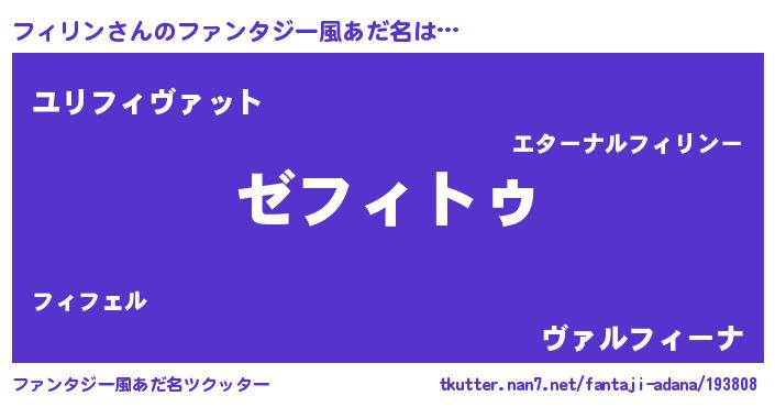 | 意味不明あだ名 | 『自称フィリン』『しいたけ科フィリン属』 |