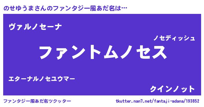 | 男性向けラノベタイトル風あだ名 | 『のせゆうまの嫁は女の子じゃないと思った?』 |