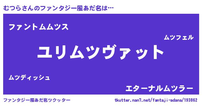 | 男性向けラノベタイトル風あだ名 | 『むつら~年齢イコール彼女いない歴の魔法使い~』 |