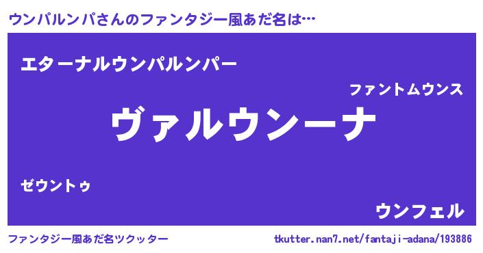 | 意味不明あだ名 | 『住所不定無職ウンパルンパ(4歳)』 |