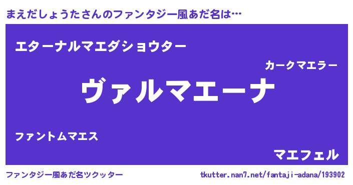 | 意味不明あだ名 | 『住所不定無職まえだしょうた(8歳)』 |