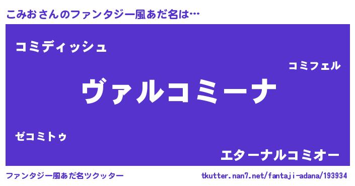 | 男性向けラノベタイトル風あだ名 | 『魔弾の王とこみお』『こみおの憂鬱』 |