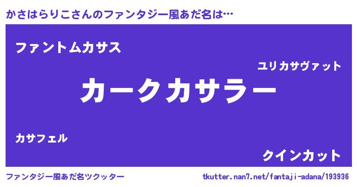 | 意味不明あだ名 | 『とにかく怪しいかさはらりこ』 |