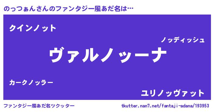 | 男性向けラノベタイトル風あだ名 | 『魔弾の王とのっつぁん』 |