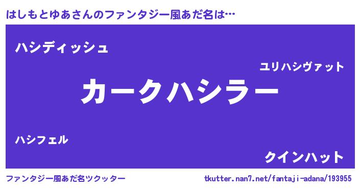 | 欧米人風あだ名 | 『はしもとゆあ・ステッグマイヤー』 |