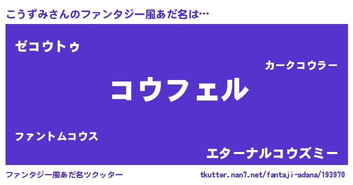| ヒーロー風カッコイイあだ名 | 『スーパーコウズミ』『究極戦士コウズミ』 |