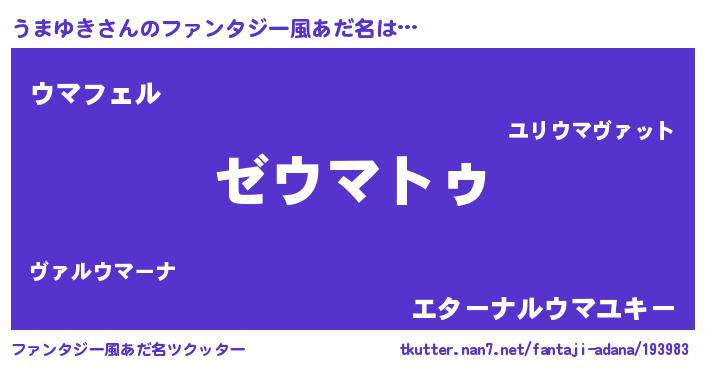 | ヒーロー風カッコイイあだ名 | 『超時空戦士ウマユキ』『仮面ウマダー』 |