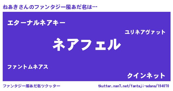 | ポケモン風あだ名 | 『ネアチュウ』『ネアゴンZ』 |
