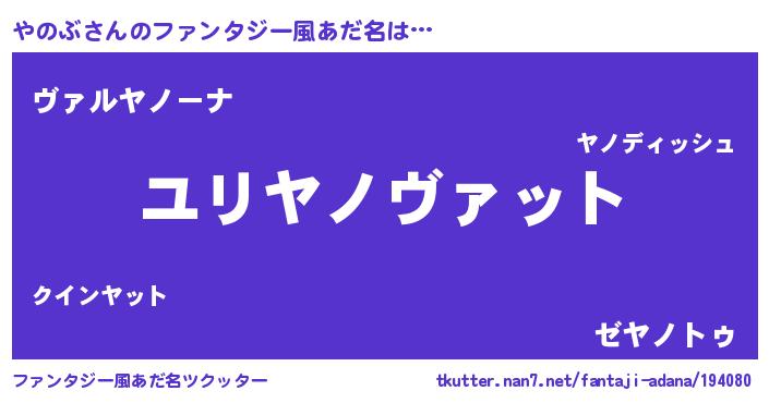 | 男性向けラノベタイトル風あだ名 | 『ヤノブスレイヤー』 |