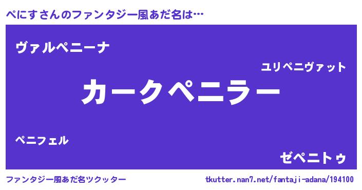 | 男性向けラノベタイトル風あだ名 | 『うちのぺにすが世界を掌握している!』 |