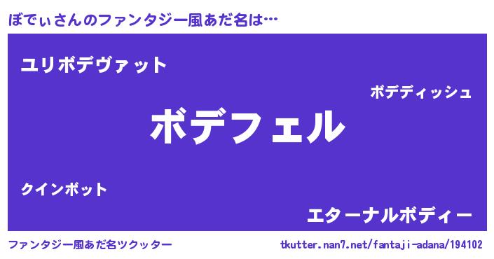 | 自動車の名前っぽいあだ名 | 『ボデティマ』『ボールスデイス』 |