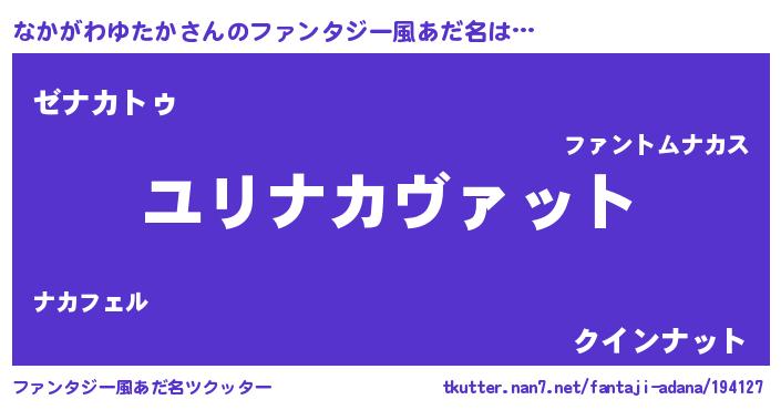 | 男性向けラノベタイトル風あだ名 | 『ナカガワユタカスレイヤー』 |