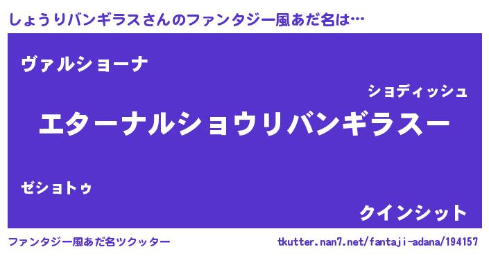 | 欧米人風あだ名 | 『しょうりバンギラスクリステル』 |