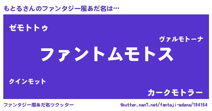 | ヒーロー風カッコイイあだ名 | 『魔戒騎士モト』『最強戦士モトル』 |