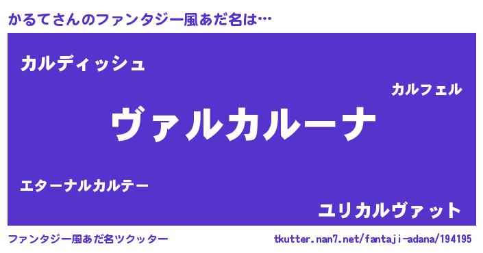 | 意味不明あだ名 | 『住所不定無職かるて(9歳)』 |