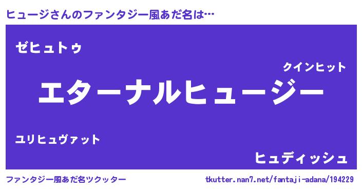 | 女子向けラノベタイトル風あだ名 | 『ヒュージの雑貨屋さん』 |