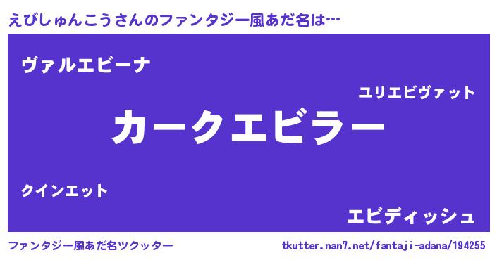 | 意味不明あだ名 | 『住所不定無職えびしゅんこう(50歳)』 |