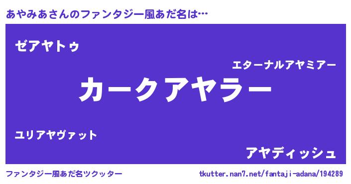 | 男性向けラノベタイトル風あだ名 | 『緋弾のアヤミア』『アヤミアスレイヤー』 |