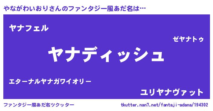 | ヘコむあだ名 | 『やながわいおり(笑)』『やなふぇ~』 |