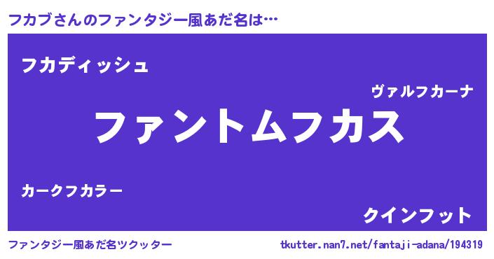 | ポケモン風あだ名 | 『ヒフカブ』『ゼニフカ』『フーカイ』 |