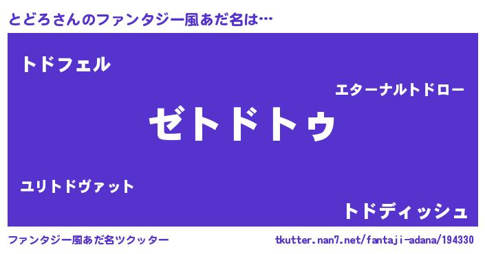 | 男性向けラノベタイトル風あだ名 | 『とどろに滅ぼされるだけの簡単なお仕事です』 |