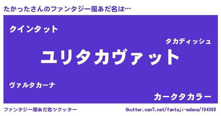 | 男性向けラノベタイトル風あだ名 | 『タカッタスレイヤー』 |