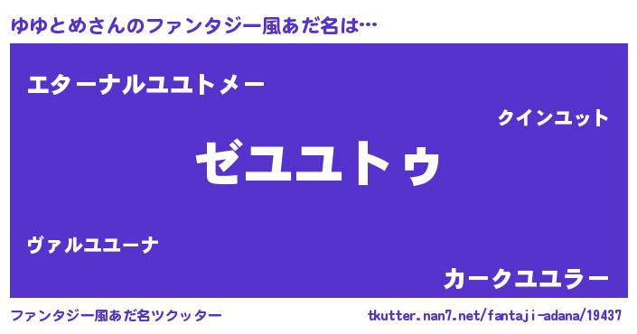 | 男性向けラノベタイトル風あだ名 | 『Re:ゆゆとめから始める異世界生活』 |