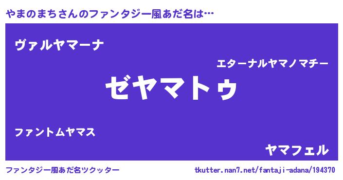 | 女子向けラノベタイトル風あだ名 | 『やまのまちなんてお断りですっ。』 |