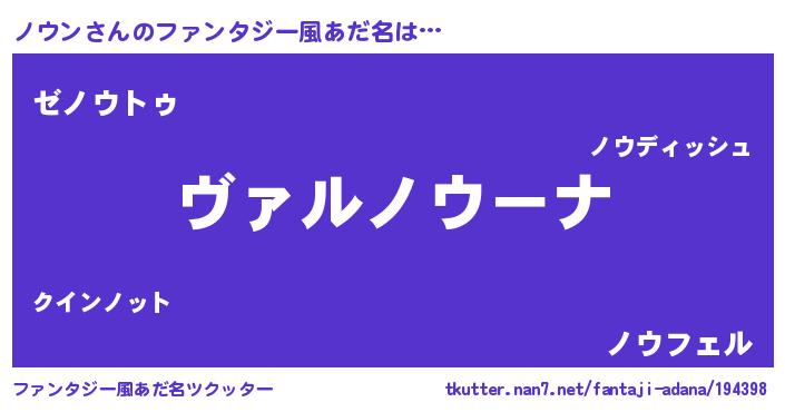 | 男性向けラノベタイトル風あだ名 | 『この素晴らしい世界にノウンを!』 |