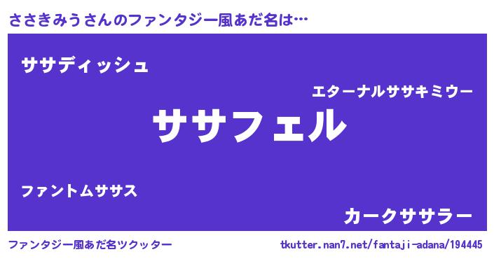 | 意味不明あだ名 | 『ペロリンささきみう』『自称ささきみう』 |