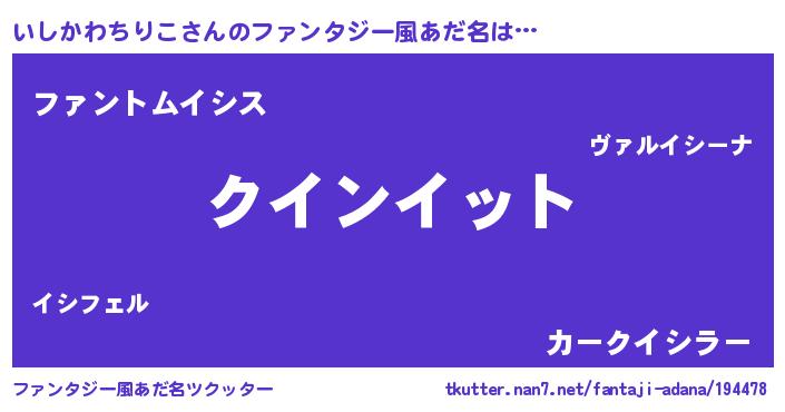 | 男性向けラノベタイトル風あだ名 | 『おまえをオタクにしてやるから、俺をいしかわちりこにしてくれ! 』 |