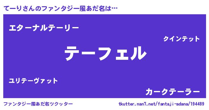 | 男性向けラノベタイトル風あだ名 | 『てーりの憂鬱』『緋弾のテーリ』 |