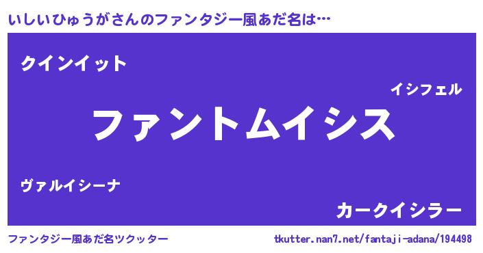 | ポケモン風あだ名 | 『ヒイシイヒュウガ』『イックウザ』 |