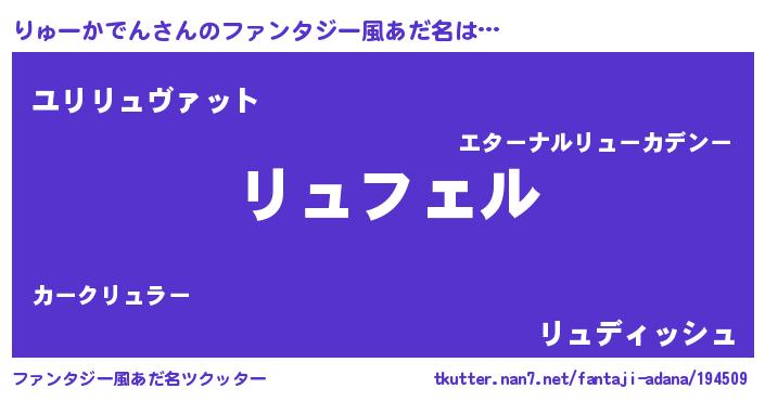 | 男性向けラノベタイトル風あだ名 | 『りゅーかでんの憂鬱』 |