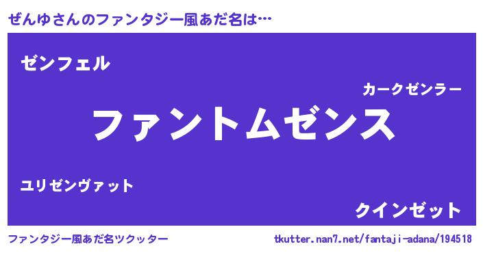 | 自動車の名前っぽいあだ名 | 『ゼント』『ランゼンギーニ』『ゼンR』 |