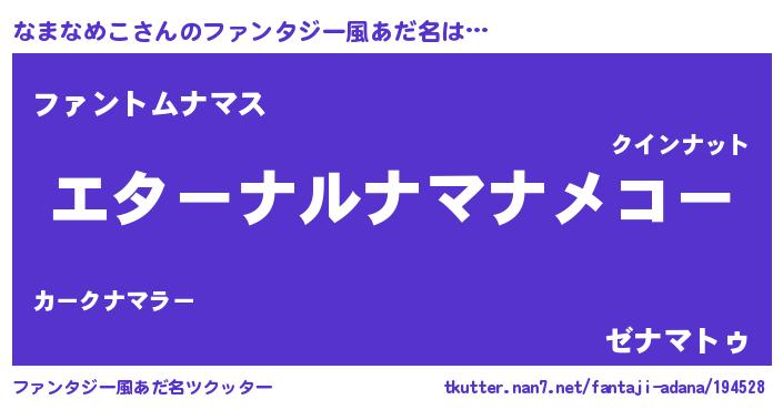| 欧米人風あだ名 | 『なまなめこクリステル』 |