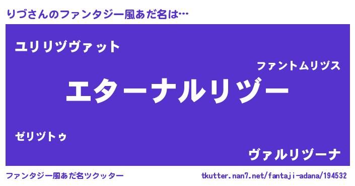 | 女子向けラノベタイトル風あだ名 | 『りづの雑貨屋さん』『りづ様がみてる』 |