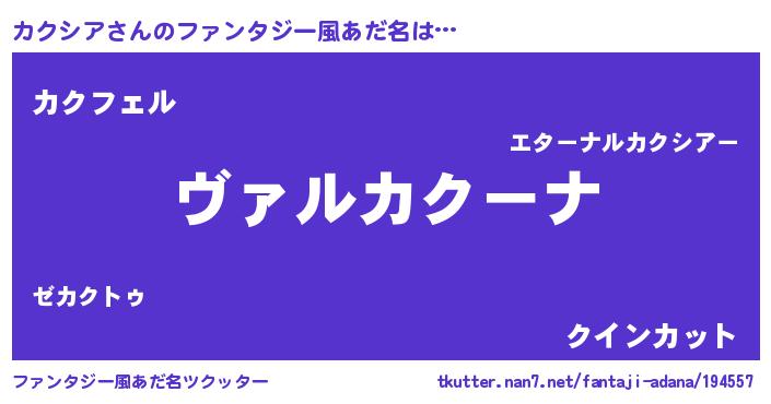 | 意味不明あだ名 | 『住所不定無職カクシア(79歳)』 |