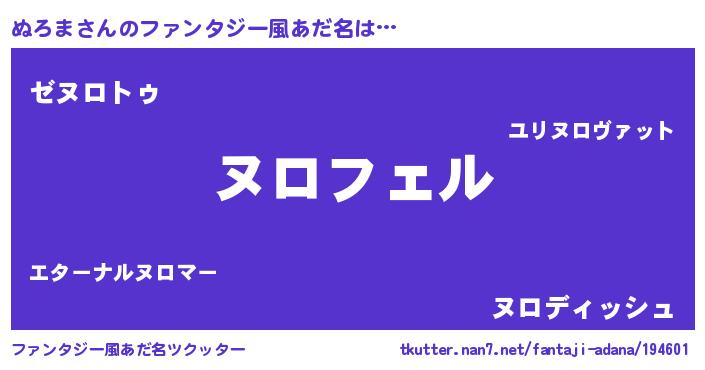 | 意味不明あだ名 | 『ペロリンぬろま』『自称ぬろま』 |
