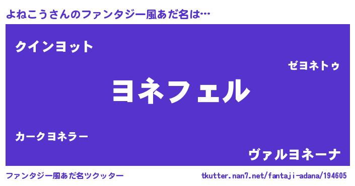 | 欧米人風あだ名 | 『マイケルよねこう』『ダニエルよねこう』 |