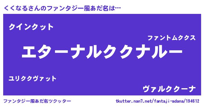 | 意味不明あだ名 | 『くくなるフォーエバー』 |