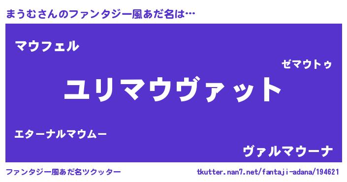 | 男性向けラノベタイトル風あだ名 | 『まうむ~年齢イコール彼女いない歴の魔法使い~』 |