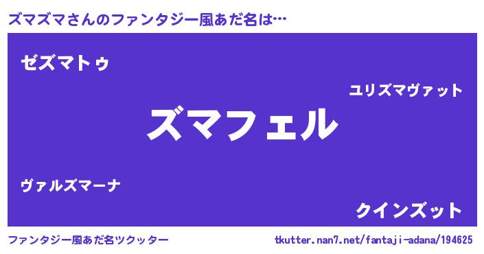 | 男性向けラノベタイトル風あだ名 | 『ズマズマの憂鬱』 |
