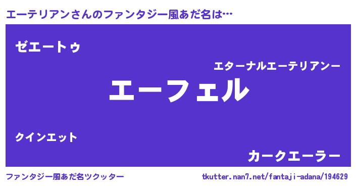 | 男性向けラノベタイトル風あだ名 | 『エーテリアンの憂鬱』 |