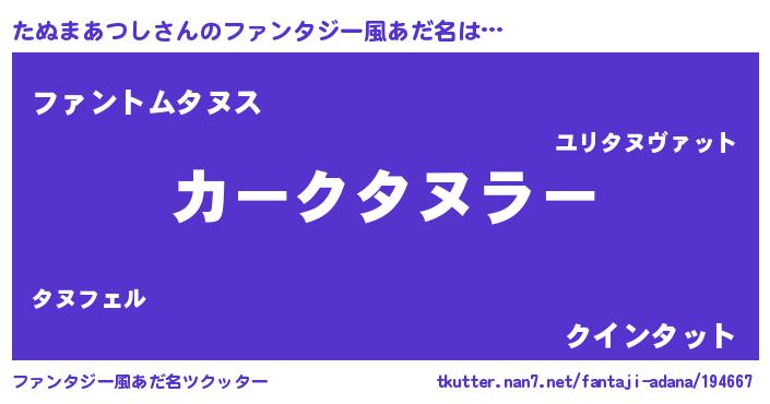 | ヒーロー風カッコイイあだ名 | 『幻影騎士タヌ』『スーパータヌマアツシ』 |