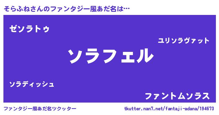 | ヒーロー風カッコイイあだ名 | 『スーパーソラフネ』『究極戦士ソラフネ』 |