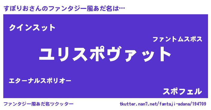 | 男性向けラノベタイトル風あだ名 | 『スポリオスレイヤー』『すぽりおの憂鬱』 |